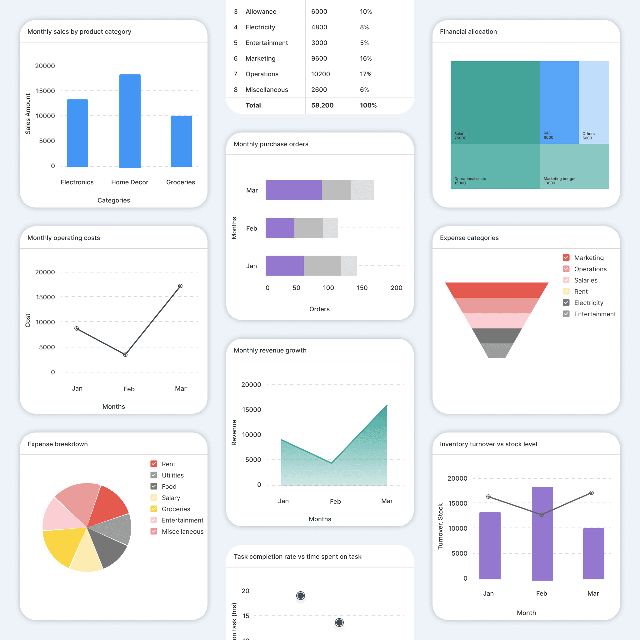 RCOR Intelliger transforms raw data into interactive, easy-to-understand dashboards. With over 50 dynamic widget types, you can visualize your KPIs and performance metrics exactly how you want, making it easier to spot trends, track progress, and make informed decisions.